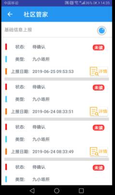 5.基础信息上报:上级领导和社区民警可查看基础信息上报情况。点击基础信息按钮跳转基础信息列表界面,点击详情查看信息详情。可进行信息确认和驳回操作。